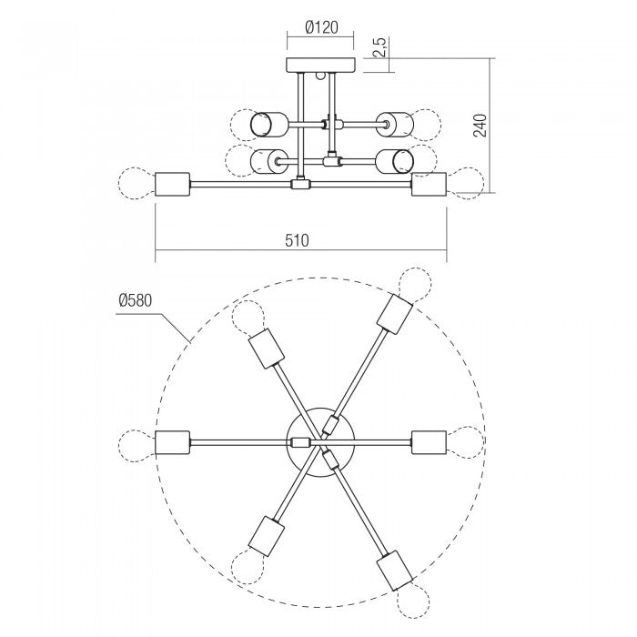 Lustră Ozu 01-2707 (Ø58 cm), negru/auriu, 6xE27, IP20. Design modern pentru interior, structură din metal negru mat cu detalii aurii mate — accent elegant pentru living, dining sau hol. Becurile nu sunt incluse.