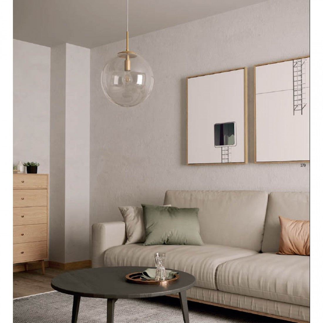 Lustra suspendată Global aduce un accent modern și discret, cu corp din metal finisat alama și glob din sticlă suflată transparentă. Diametrul d...
