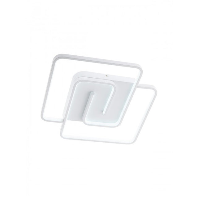 Plafonieră LED Intersia 01-2758, alb, 38W, 2250 lm, 3000K/4500K/6500K, L.48 cm, IP20. Corp din metal vopsit alb cu dispersoare din silicon opal pentru lumină uniformă. Telecomandă inclusă: ON/OFF, 3 programe, reglaj intensitate, setare temperatură de culoare, timer și mod lumină de veghe—perfectă pentru interioare moderne.