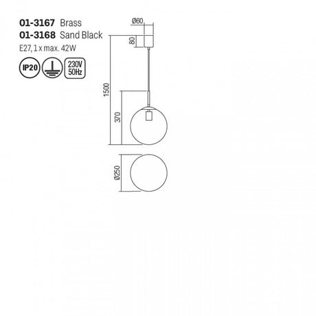 Lustra suspendata Global, alama, 1xE27, D.25cm, IP20, Smarter, 01-3167