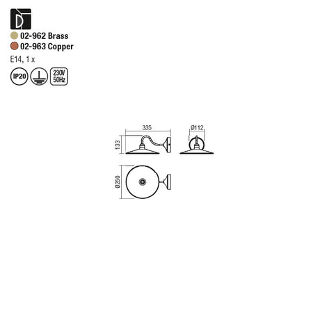 Aplica de perete Altenia, cupru, 1xE14, D.25cm, IP20, Smarter, 02-963