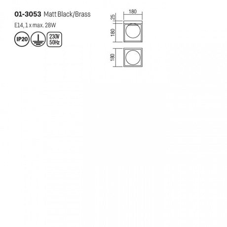 Plafoniera Zodiac, negru/alama, sticla, 1xE14, L.18cm, IP20, Smarter, 01-3053