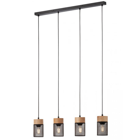 Lustra suspendata Oaker, lemn, metal argintiu, 4xE14, H.150cm, IP20, Smarter, 01-3497