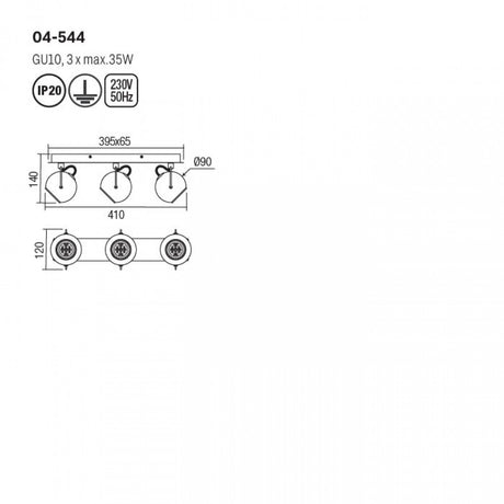 Plafoniera Matias, aur mat, 3xE14, L.46cm, IP20, Smarter, 04-548