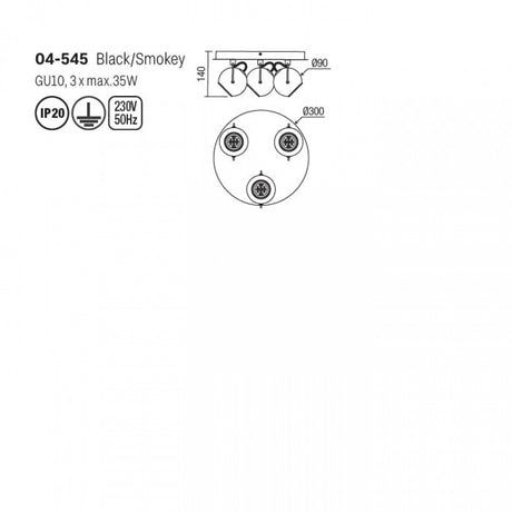 Plafoniera Ward, negru mat, sticla, 3xGU10, D.30cm, IP20, Smarter, 04-545