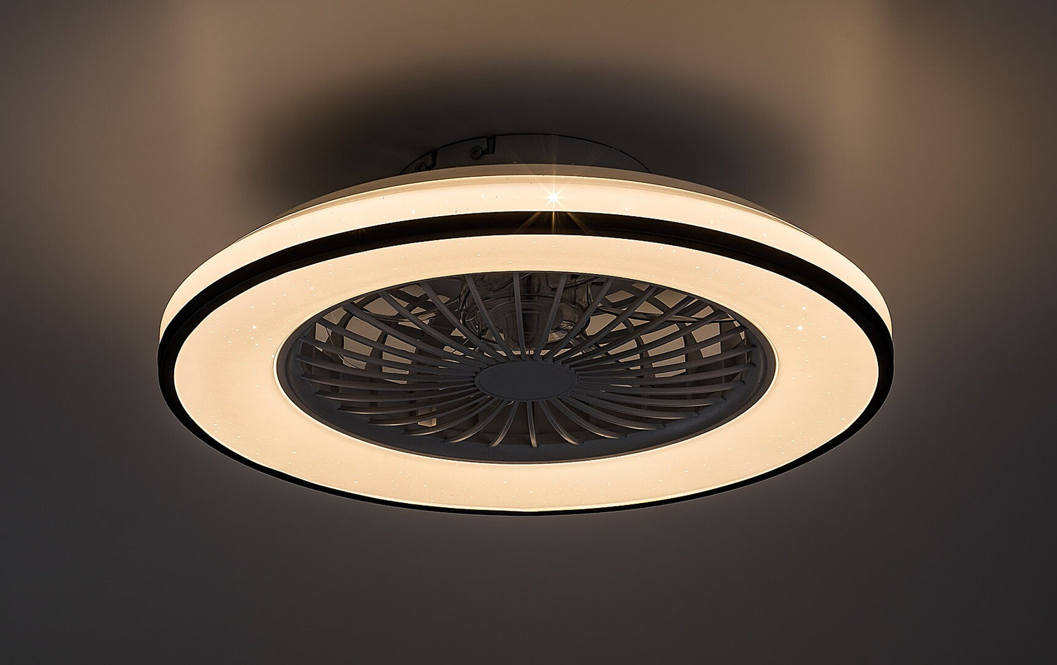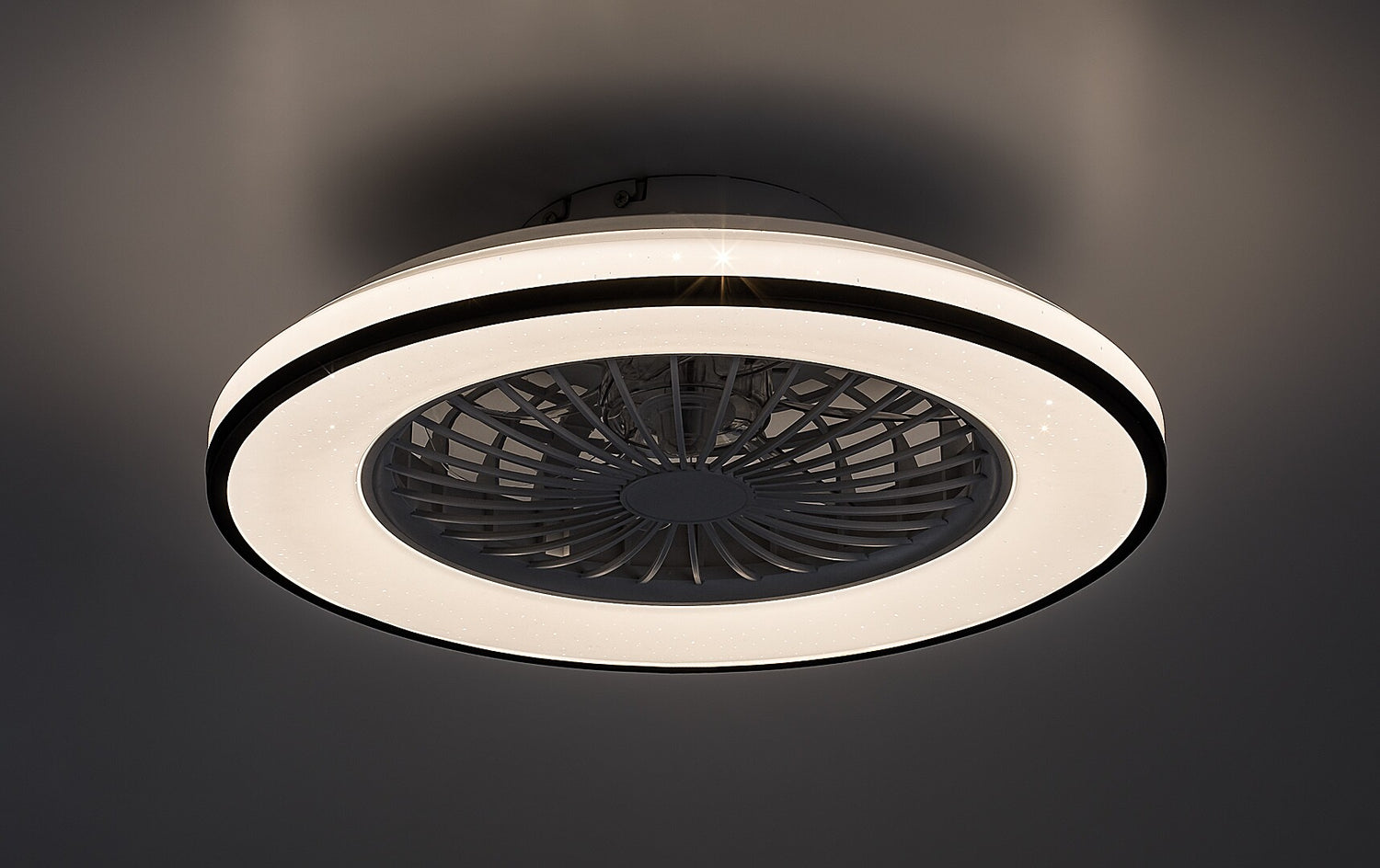 Plafoniera LED Dalfon2 cu ventilator, este alegerea ideală pentru cei care caută un model versatil 2-în-1 pentru încăperile mai spațioase din casa lor. Lampa are o sursă de lumină LED integrată cu intensitate luminoasă mare și, pe lângă ventilator, dispune de o gamă de funcții inteligente: luminozitatea și temperatura culorii pot fi reglate cu telecomanda, iar lampa are și funcții de memorie, temporizator și lumină de noapte. Temperatura culorii poate fi ajustată și printr-un întrerupător de perete. Corpul este de culoare neagră și este realizat din metal și plastic. Abajurul are un elegant efect de stele pe suprafață. Viteza ventilatorului este reglabilă, iar puterea este suficientă pentru încăperi de până la 33 m². Lampa inteligentă se caracterizează printr-un consum redus de energie și o durată lungă de viață. Se recomandă în principal pentru sufragerii moderne, dormitoare și birouri. Garantie 5 ani.