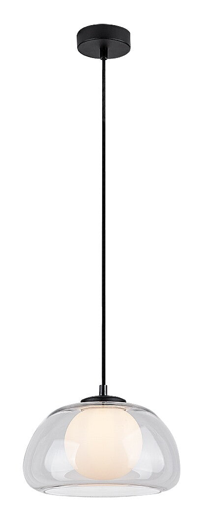 Lampa suspendată Rabalux Elowen este alegerea ideală pentru cei care caută o lampă suspendată modernă și universală, care poate fi instalată în aproape orice încăpere din casa lor. Această lampă plăcută vizual este atractivă datorită combinației de forme sferice și rotunjite: abajurul exterior este realizat din sticlă transparentă și prezintă suprafețe ușor curbate. Dedesubt se află un abajur interior sferic din sticlă albă. Corpul lămpii este realizat din metal negru și poate fi fixat de tavan cu ajutorul unei baze decorative mici, rotunde. Lampa suspendată este recomandată pentru living, bucătărie, sufragerie și dormitor. Poate fi utilizată cu o singură sursă de lumină cu o putere de până la 5 W, care emite lumină albă caldă sau naturală. Tipul de soclu este G9. Lampa suspendată este furnizată fără sursă de lumină.
