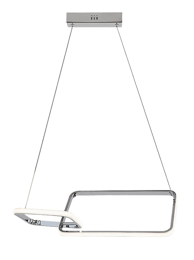 Lustra LED suspendata Malwen, este recomandata celor care apreciază designurile atrăgătoare și neobișnuite. Acest corp de iluminat suspendat este realizat cu un suport metalic de culoare cromată și un abajur din aluminiu alb, și poate fi fixat pe tavan prin intermediul unei baze decorative dreptunghiulare de culoare cromată. Esența lămpii este formată din două elemente de lampă de dimensiuni diferite, interconectate, ale căror forme pătrate sunt îmblânzite de colțurile rotunjite. Lampa suspendată are o intensitate luminoasă semnificativă, ceea ce o face perfectă și pentru încăperi mai mari. Prin design, lumina sa ajunge în toate părțile camerei. Este ideală pentru livinguri moderne, bucătării, sufragerii și dormitoare. Are o sursă de lumină LED integrată care emite o lumină albă naturală. Datorită tehnologiei LED, lustra se caracterizează printr-o funcționare economică și o durată de viață îndelungată.