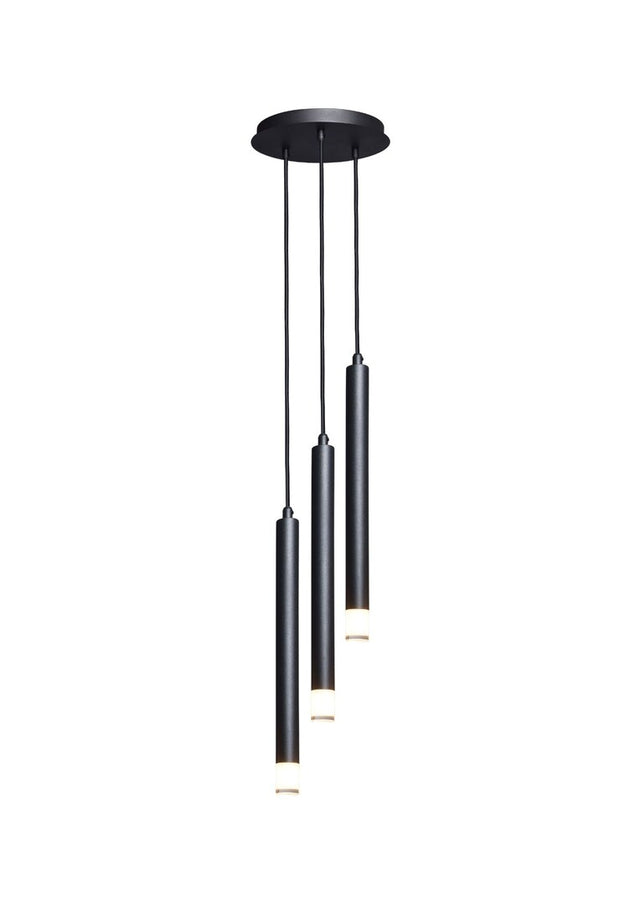 Lustra suspendată Ramira este recomandată celor care caută o lustra suspendată minimalistă ce poate fi integrată în aproape orice încăpere din casa lor modernă. Lustra este realizată din metal negru, cu abajururi transparente din acrilic și o bază decorativă mare, rotundă. Capetele lustrei au o formă tubulară, cilindrică și sunt suspendate la înălțimi diferite, ceea ce conferă lămpii suspendate un aspect interesant. Acest model este alegerea ideală pentru living, bucătărie, sufragerie sau dormitor. O poți instala deasupra mesei de dining sau chiar deasupra patului. Pendulul poate fi utilizat cu trei becuri, fiecare cu o putere de până la 5 W. Tipul de soclu este G9. Poți alege surse de lumină care emit lumină albă caldă sau naturală. Lustra suspendată este furnizată fără surse de lumină.