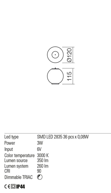 Dispersor LED Bilia, alama, 3W, 3000K, 350lm, Redo, LSD01-2604BS