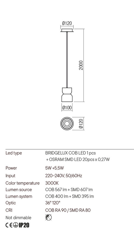 Lustra suspendata LED Yona, auriu mat, 5W +5.5W, COB 567lm + SMD 607lm, 3000K, IP20, Redo, 01-2702