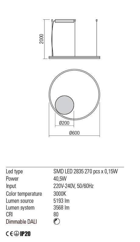 Lustra suspendata LED Orbit, alb mat, 110W, 14587lm, 4000K, IP20, Redo, 01-1920-DALI