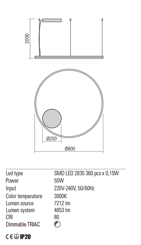 Lustra suspendata LED Orbit, alb mat, 55W, 7212lm, 3000K, IP20, Redo, 01-1712-TRIAC