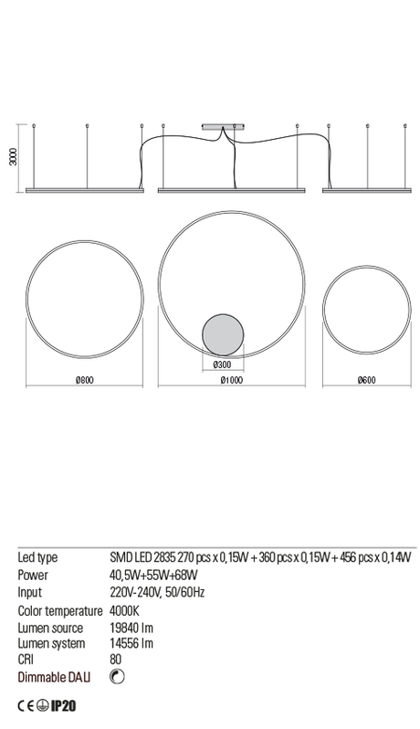 Lustra suspendata LED Orbit, alb mat, 40.5W + 55W + 68W, 21146lm, 3000K, IP20,Redo, 01-1722-DALI