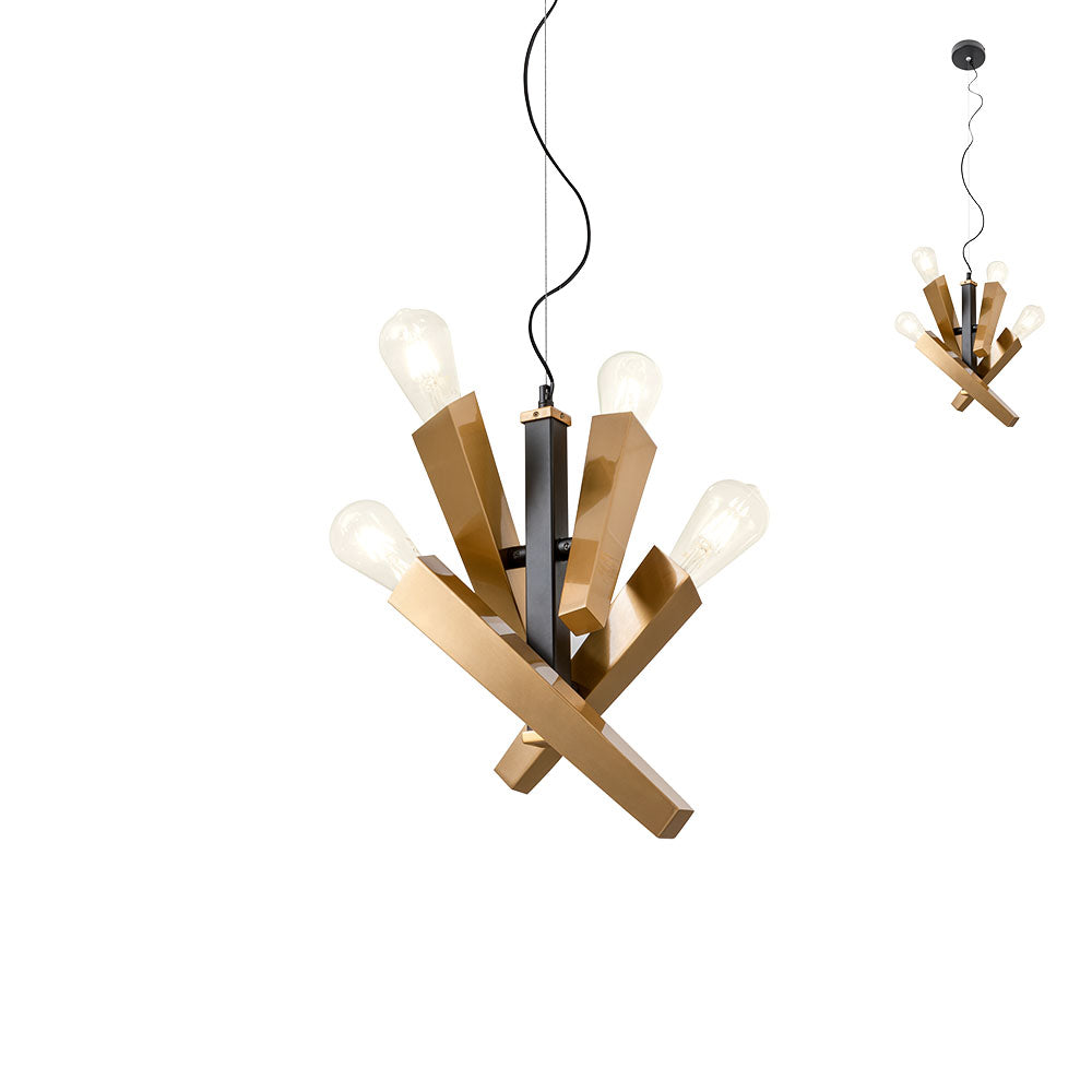 Suspensie pentru interior, structura din metal vopsita negru mat cu elemente metalice finisate alama antica.
