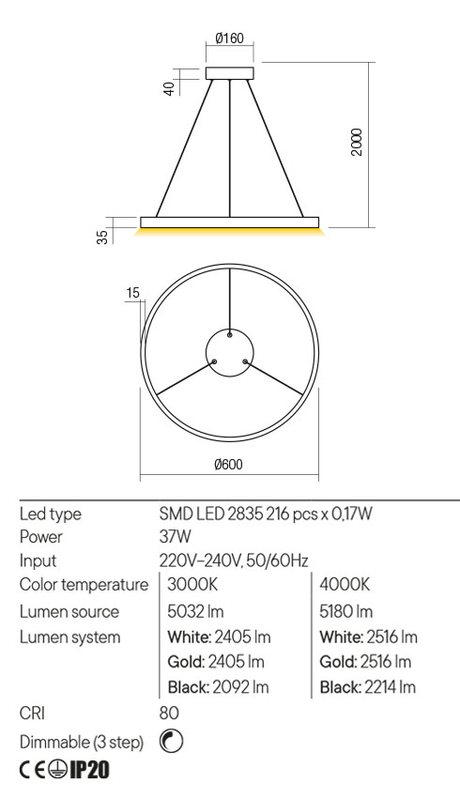Lustra LED Cronos, alama, 65W, 9393lm, 3000K, IP20, Redo, 01-2546