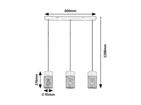 Lustra suspendata Cortado, negru, 3xE27, IP20, Rabalux, 5361