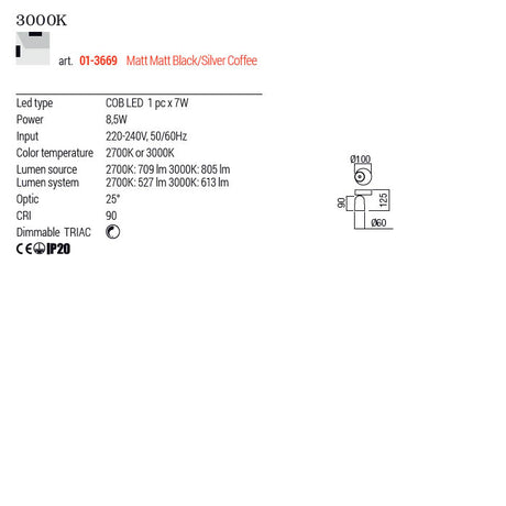 Aplica LED Kobe, negru/silver coffee, 8,5W, 613lm, 3000K, IP20, Redo, 01-3669