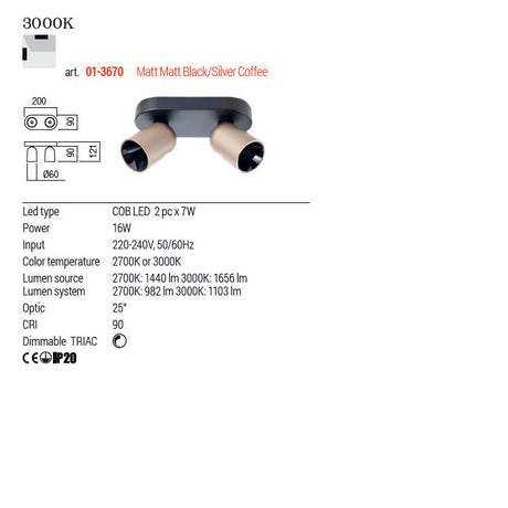 Plafoniera LED Kobe, negru/silver coffee, 16W, 1103lm, 3000K, L.20cm, IP20, Redo, 01-3670