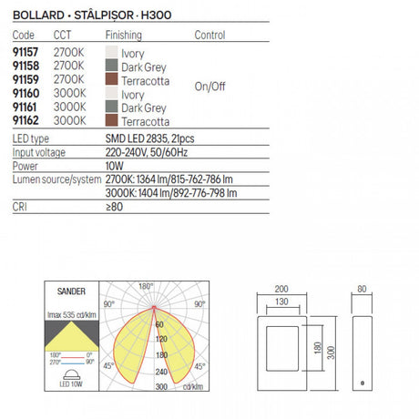 Stalp exterior LED Sander, teracota, 10W, 815lm, 2700K, IP65, H.30cm, Redo, 91159