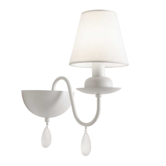 Aplica pentru interior, structura din metal vopsit alb mat, abajur textil alb.