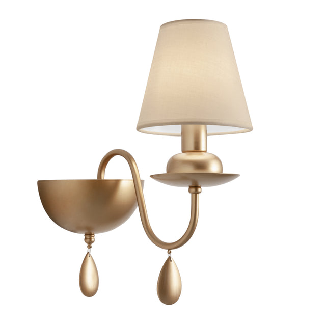 Aplica pentru interior, structura din metal finisat bronz, abajur textil ivoar.