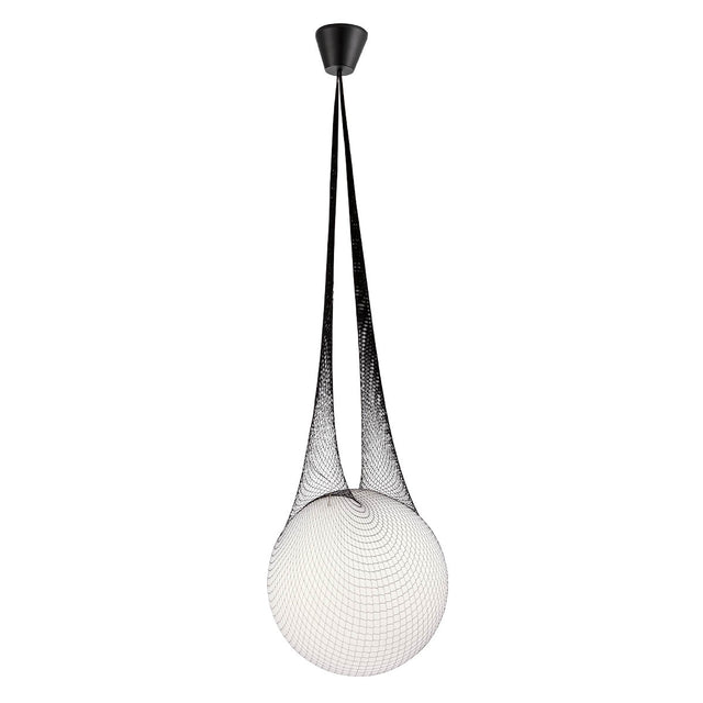 Daca doriti un corp de iluminat neobisnuit, dar in acelasi timp estetic si calitativ, Alluria este alegerea ideala. Baza din metal vopsit negru mat cu plasa textila neagra si dispersorul opal din sticla se imbina armonios pentru a forma o suspensie cu un design contemporan si unic. Aceasta vine la pachet cu becuri LED