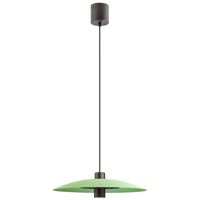 Suspensie pentru interior cu dispersie directa/indirecta a luminii, echipata cu un LED COB si LED-uri SMD, structura din metal vopsit negru mat, abajur din metal vopsit verde mat, dispersor din acril alb satinat.