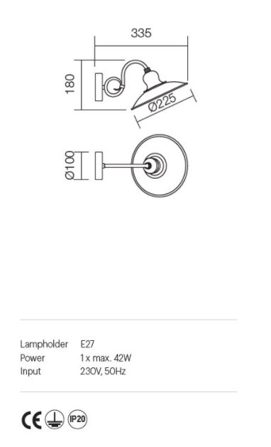 Aplica de perete VERNER, maro mat detalii alama antichizata, 1XE27, Smarter 02-934