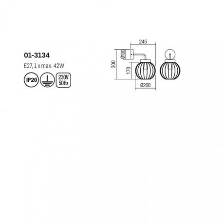 Aplica de perete LENA, 1xE27, INCANTI 02-755