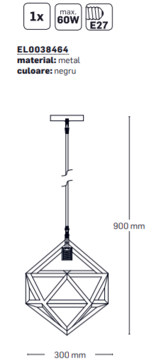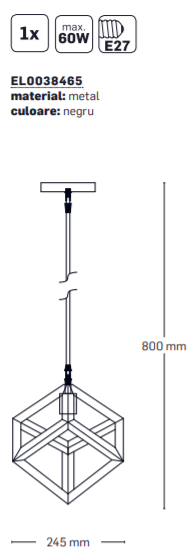 Lustra suspendata Levi, negru, 1xE27, IP20, Rabalux, 25700