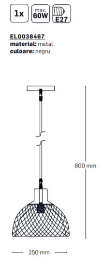 Lustra suspendata Alessandra, negru mat, 1xE27, IP20, Rabalux, 2156