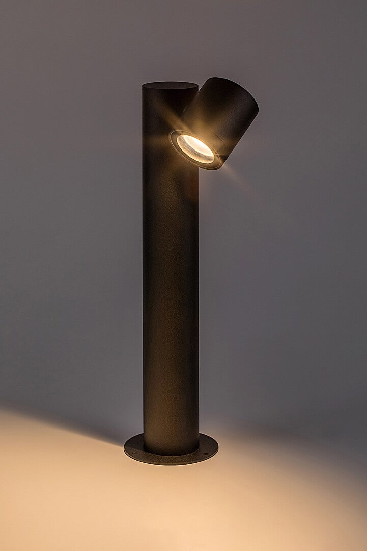 Stalp exterior Enol, este recomandat în primul rând celor care, pe lângă un design modern, consideră important ca lampa să fie realizată din materiale durabile și de calitate.Are culoarea neagră si este fabricat din aluminiu, iar acesta este completat cu un abajur transparent din sticlă. Un cap de lampă cilindric, rotativ, este atașat pe lateralul lămpii cilindrice. Această lampă de podea pentru exterior este ideală pentru grădină sau terasă. Fiind protejată împotriva pătrunderii particulelor solide cu diametrul de 1 mm sau mai mare și împotriva stropirii cu apă din orice direcție, poate rezista ploilor mai abundente. Lampa modernă de podea pentru exterior poate fi utilizată cu un singur bec cu soclu GU10. Este livrată fără sursă de iluminat.