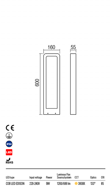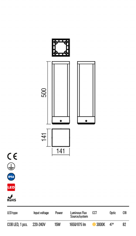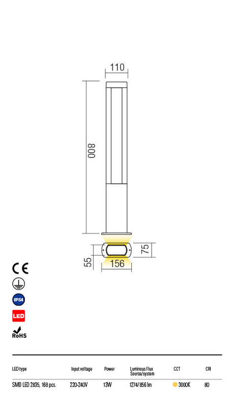 - VandutRedo Stalp exterior LED Dolmen, 13W, 1274lm, 3000K, IP54, Redo, 90125 618,00 leiPret per bucata /Indisponibil
