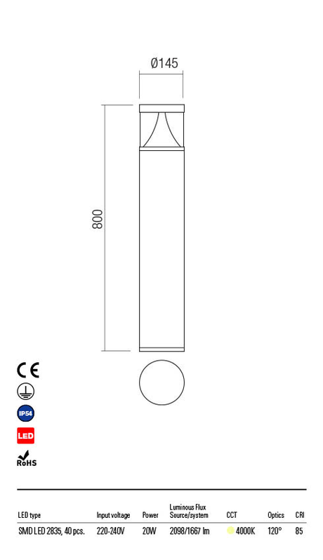 - Redo - Stalp exterior LED Palace, gri, 20W, 1980lm, 3000K, IP54, Redo, 90161 In stoc (100 bucati)816,00 leiPret per bucata /Indisponibil