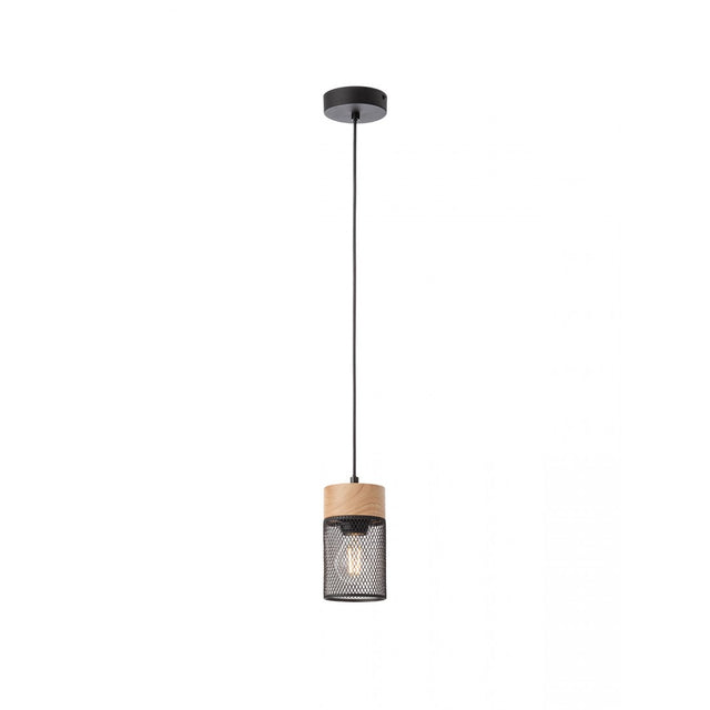 Lustra suspendată Stem îmbină estetica industrială cu căldura materialelor naturale, devenind punctul de atracție în living, dining sau deasupra insulei. Structura din metal vopsit negru mat este pusă în valoare de elementele din lemn natur, iar difuzoarele tip „cușcă” din rețea metalică oferă un look grafic, aerat, care lasă becurile să devină parte din design.