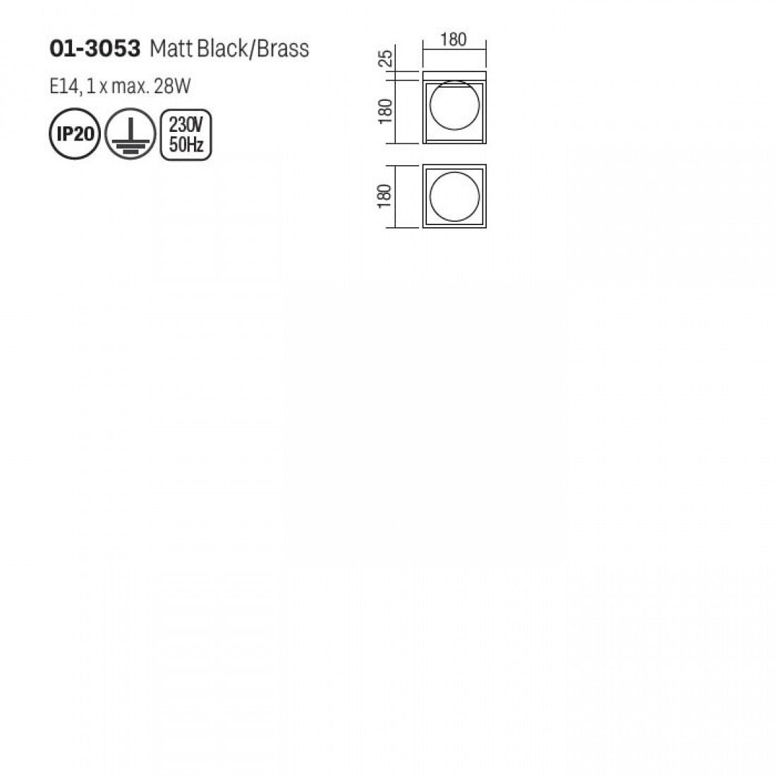 Plafoniera Zodiac, negru/alama, sticla, 1xE14, L.18cm, IP20, Smarter, 01-3053