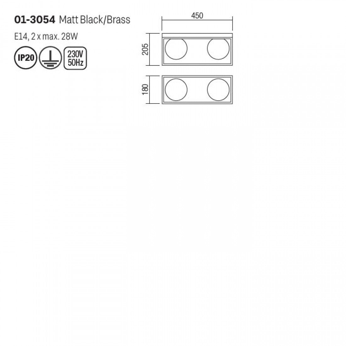 Plafoniera Zodiac, negru/alama, sticla, 2xE14, L.45cm, IP20, Smarter, 01-3054